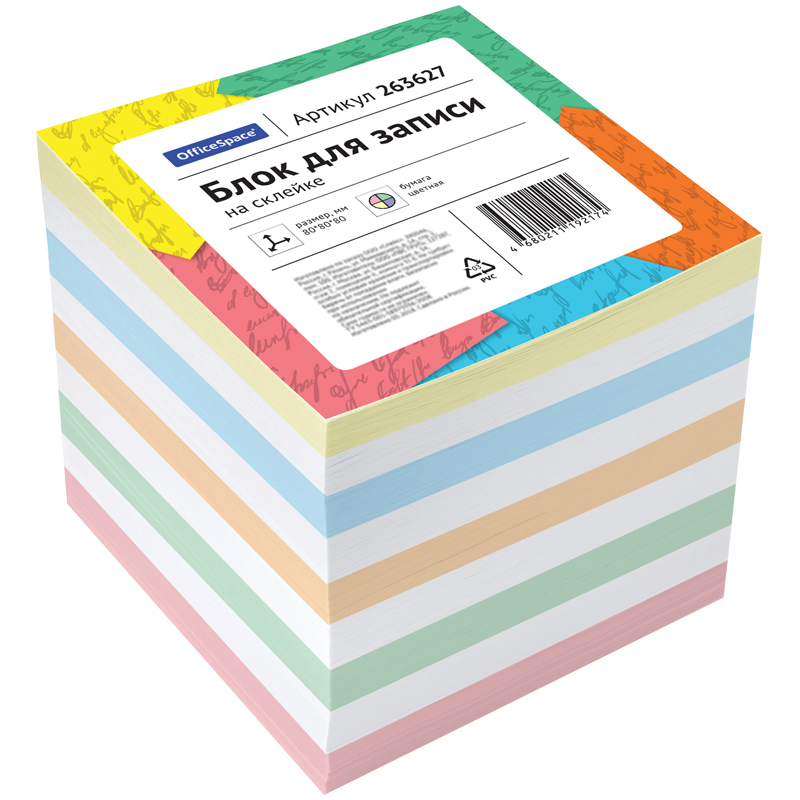 Блок для оперативных записей на склейке. Размер листа в блоке - 80 ? 80 мм. Плотность бумаги 65 г/м2, белый. Упакован в термоусадочную пленку.