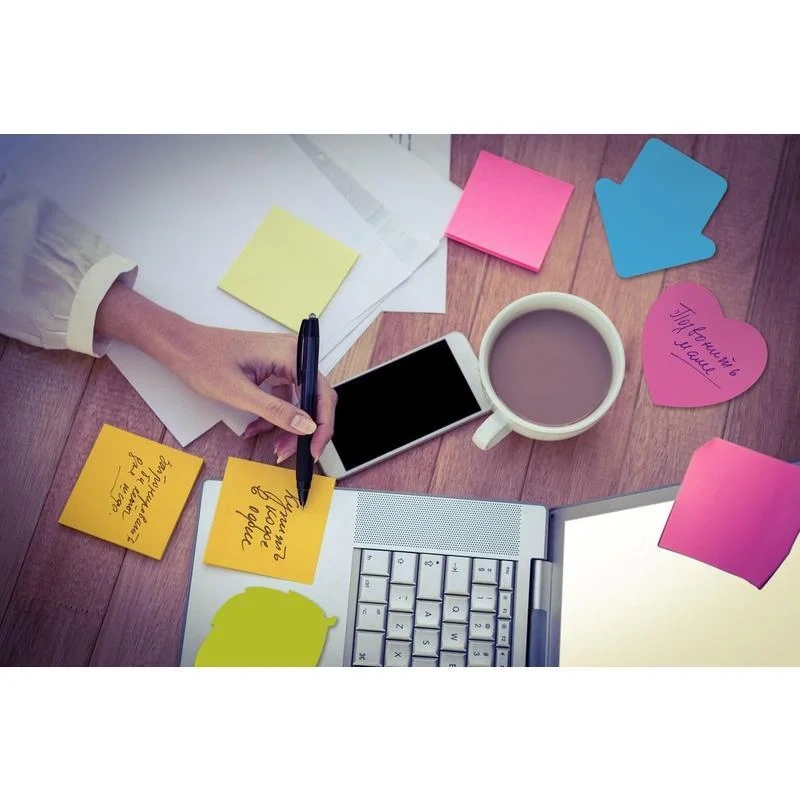 1) Отделять стикер от блока следует вдоль клеевой полосы. Так можно избежать скручивания и последующего отклеивания стикера.