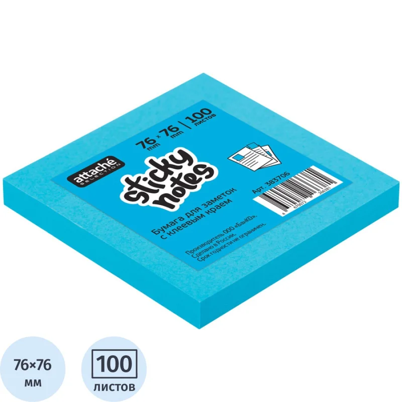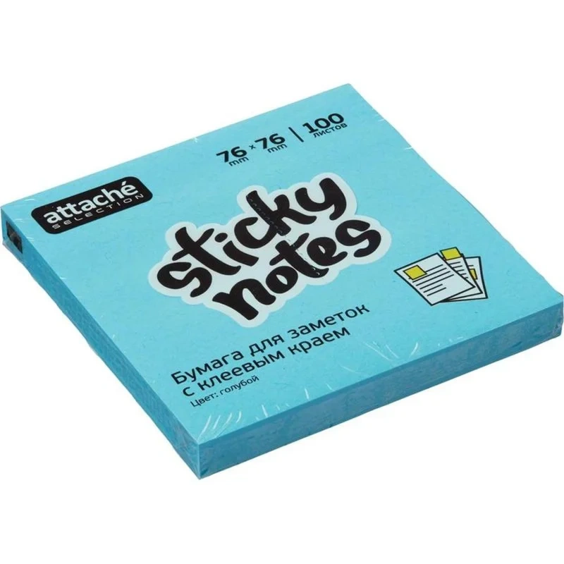 Стикеры Attache Selection в формате 76×76 мм, голубого цвета, 100 листов. Идеально подойдут для сотрудников творческих профессий и руководителей: рекомендуются для использования в процессе совещаний, обучения, мозговых штурмов. Тон стикеров — неоновый. Плотность бумаги: 75–80 г/кв.м. клейкий слой — 22 Н/м . Длина клейкой стороны 76 мм.