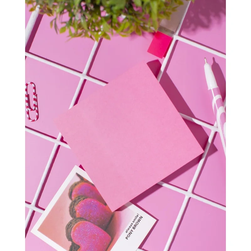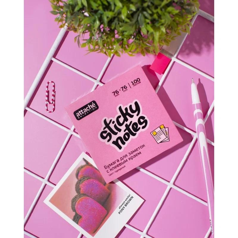 Блок для записей с клейким краем Attache розовый, неон, 76х76мм, 100 листов