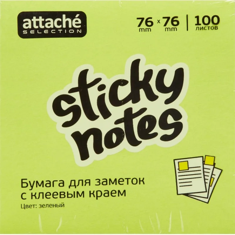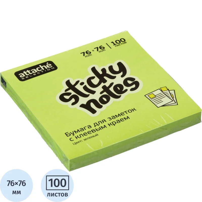 Стикеры Attache Selection в формате 76×76 мм, зеленого цвета, 100 листов. Идеально подойдут для сотрудников творческих профессий и руководителей: рекомендуются для использования в процессе совещаний, обучения, мозговых штурмов. Тон стикеров — неоновый. Плотность бумаги: 75–80 г/кв.м. клейкий слой — 22 Н/м . Длина клейкой стороны 76 мм.