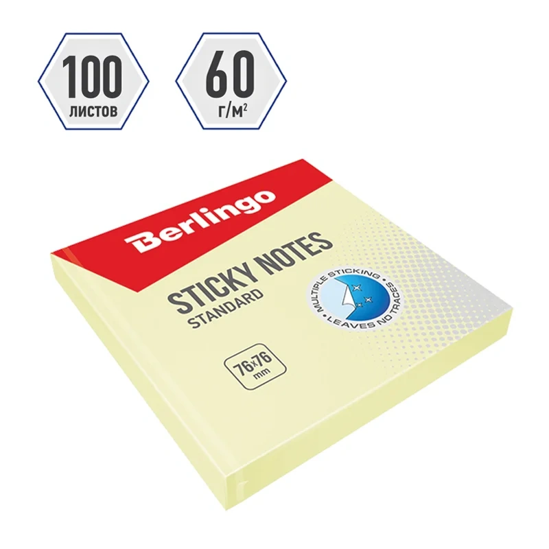 Блок бумаги для записей с клеевым краем Berlingo Standard отлично подойдёт для сохранения важной информации. Плотность бумаги для заметок составляет 60 г/м2. Размер листа в блоке для заметок 76*76 мм. В блоке 100 листов жёлтого цвета. Блок для записей изготовлен с использованием качественного клеевого состава и специальной основы, позволяющей клею полностью оставаться на отрываемом стикере. При отрывании листы не закручиваются, а качество письма остается одинаковым по всей площади стикера.