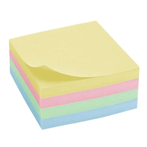 Стикеры 4 пастельных цветов (желтый, розовый, зеленый, голубой) в форме куба 76х76 мм состоят из 400 листов. Плотность бумаги составляет 75 г/м2. Клейкий слой - 35 Н/м. Легко клеятся к любой поверхности. Не оставляют следов. Упакованы в полиэтиленовую пленку.
