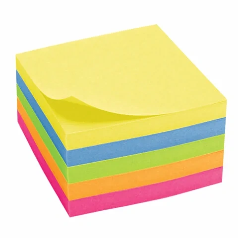 Стикеры 5 неоновых цветов (желтый, розовый, зеленый, оранжевый, малиновый) в форме куба 76х76 мм состоят из 400 листов. Плотность бумаги составляет 75 г/м2. Клейкий слой - 35 Н/м. Легко клеятся к любой поверхности. Не оставляют следов. Упакованы в полиэтиленовую пленку.