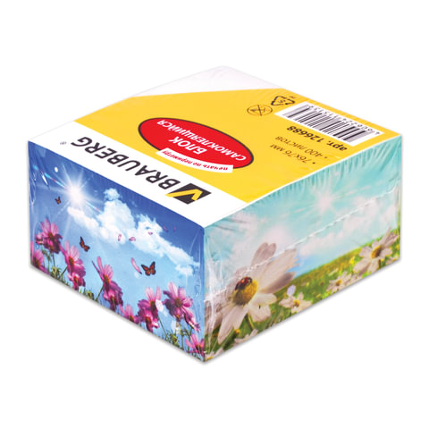 Блок для записей с клейким краем Brauberg белый, 76х76мм, 400 листов, цветная печать по периметру бл