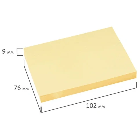 Блок для записей с клейким краем Brauberg желтый, пастельный, 76x102мм, 100 листов