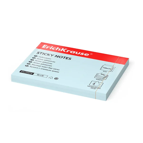 Блок для записей с клейким краем Erich Krause голубой, пастель, 75х100мм, 100 листов, 11579