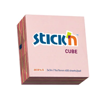Блок для записей с клейким краем Stick'n 3 цвета, неон и пастельный, 76х76мм, 400 листов