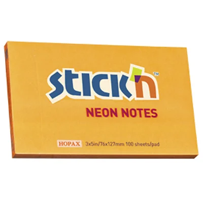 Блок для записей с клейким краем Stick'n Stick'N оранжевый, неон, 76х127мм, 100 листов