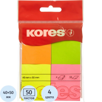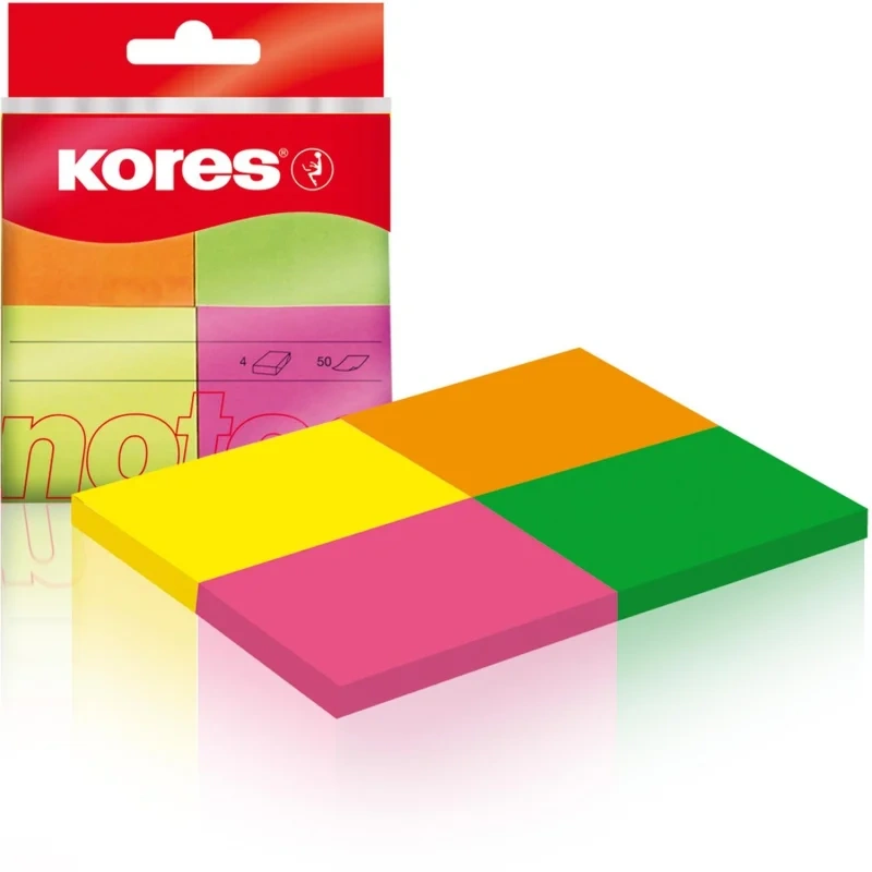 Блок для записей с клейким краем Kores 4 цвета, неон, 50x40мм, 4х50 листов