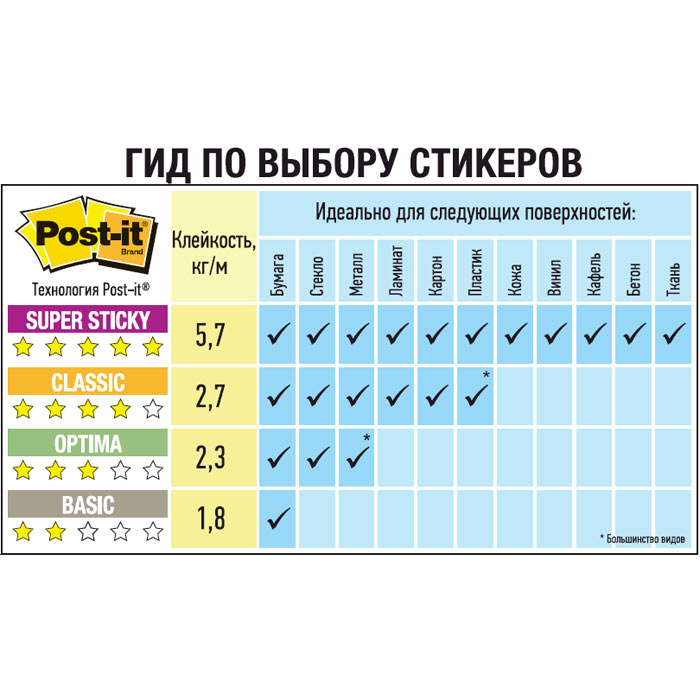 Клейкость 18 Н/м - идеальны для наклеивания на бумагу, отклеиваются без следа, допускают многократное переклеивание.