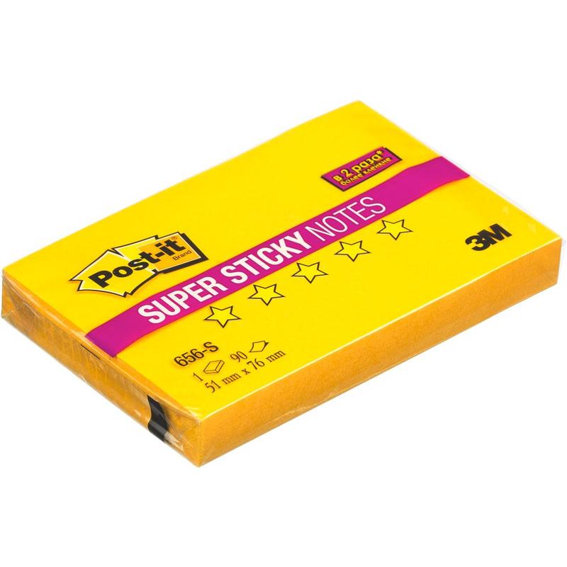 Блок для записей с клейким краем Post-It Super Sticky желтый, неон, 51x76мм, 90 листов, 656-S