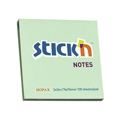Блок для записей с клейким краем Stick'n зеленый, пастельный, 76х76мм, 100 листов