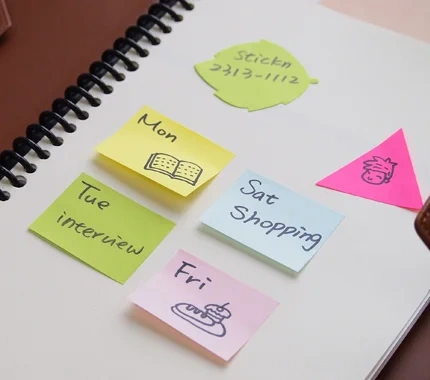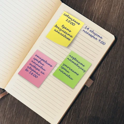 Комплект бумажных блоков для заметок с клеевым краем. Удобны для записи напоминаний, информации о важных делах. Яркие неоновые цвета.
