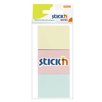 Блок для записей с клейким краем Stick'n 3 цвета, пастельный, 38x51мм, 3х100 листов