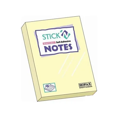 Блок для записей с клейким краем Stick'n желтый, пастельный, 38x51мм, 100 листов
