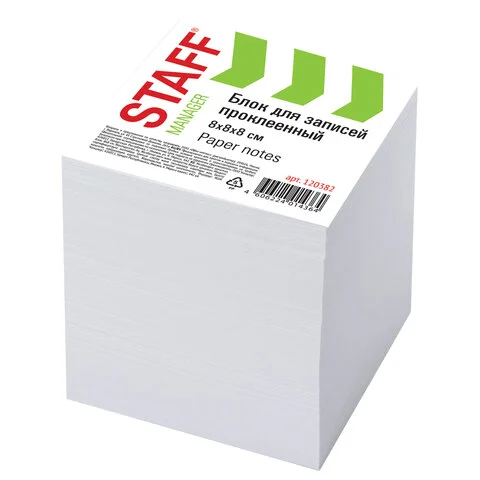 Отзывы о «Блок для записей STAFF проклеенный, куб 9х9х9 см, белый, белизна 90-92%, 129204»