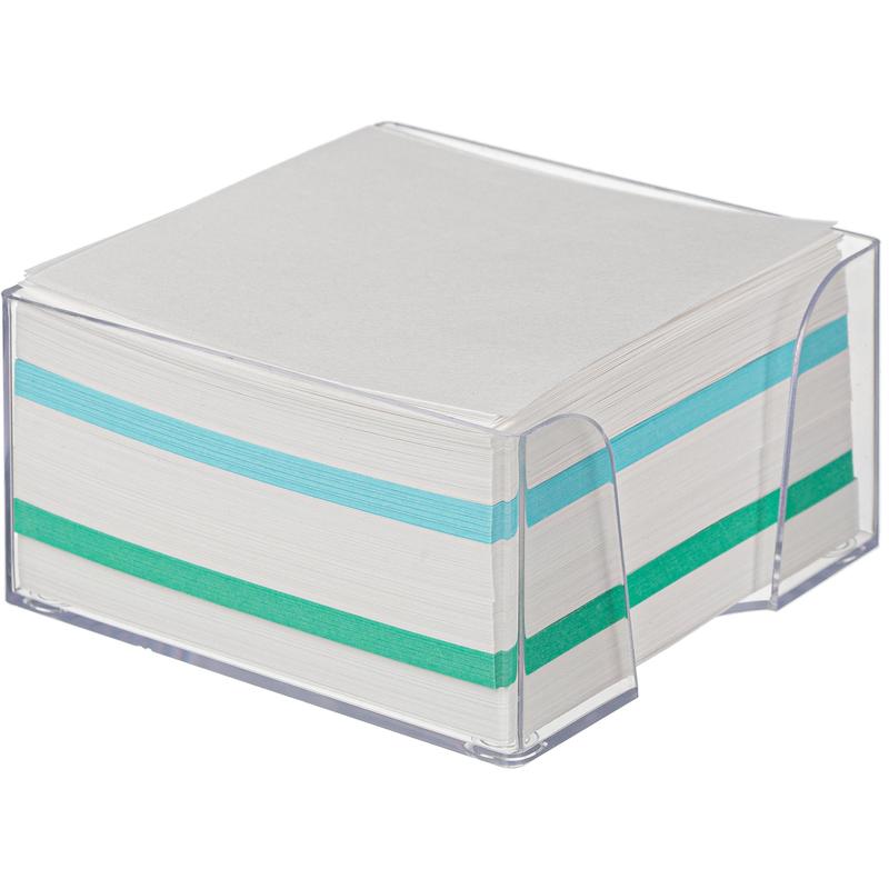 Блок высотой 5 см сложен из квадратных листов размером 9?9 см и вложен в прозрачный пластиковый бокс. Прозрачный пластиковый бокс обеспечивает удобство использования и порядок на рабочем столе. Листы не склеены между собой. Листы изготовлены из бумаги плотностью 65 г/кв.м. В боксе представлены листы трех цветов: белого, голубого, зеленого. Блок для записей подходит для письма любыми типами ручек и карандашей. Поставляется в термоусадочной пленке, защищающей блок при транспортировке.