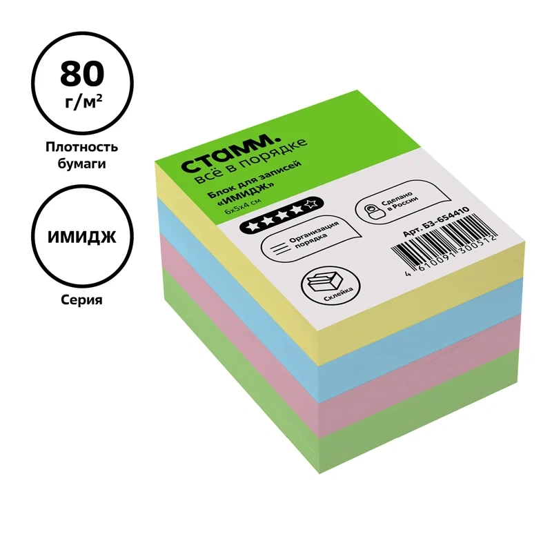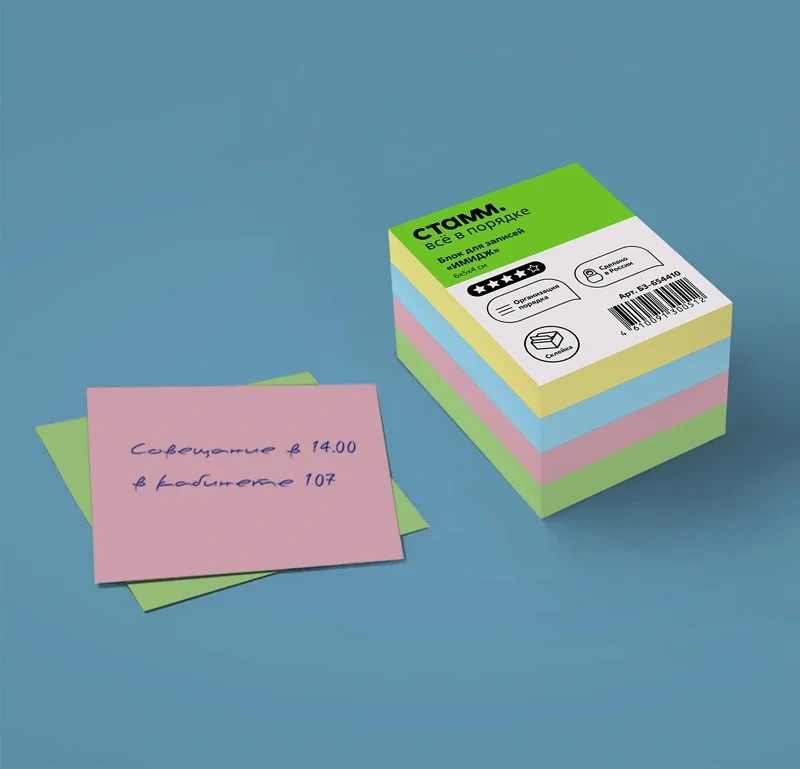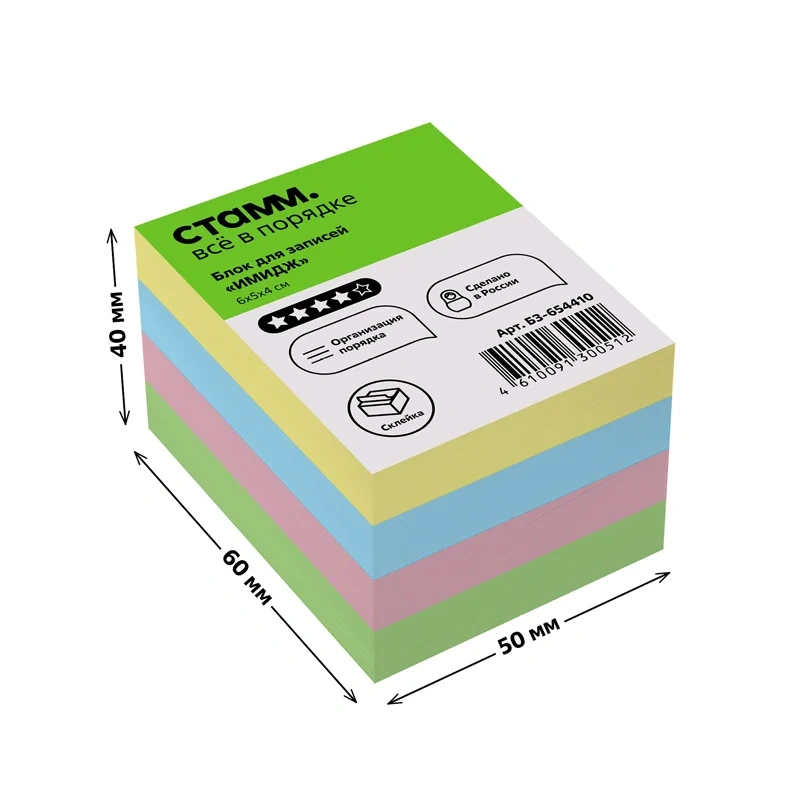 Блок для записи на склейке Стамм, 6*5*4см, цветной