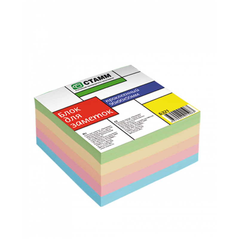 Блок для записи на склейке Стамм, 9*9*5см, цветной
