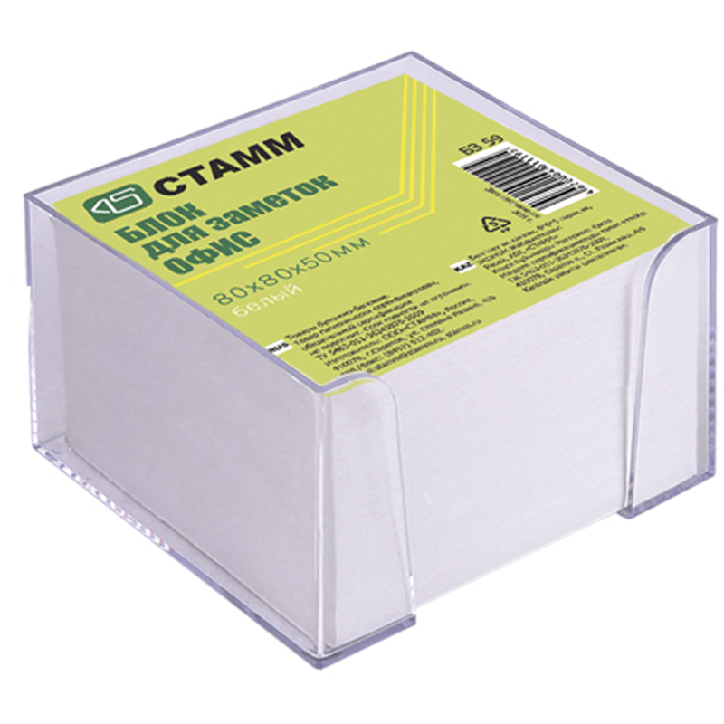 Блок для записи Стамм 'Офис', 8*8*5 см, прозрачный пластиковый бокс, белый, белизна 65-70%