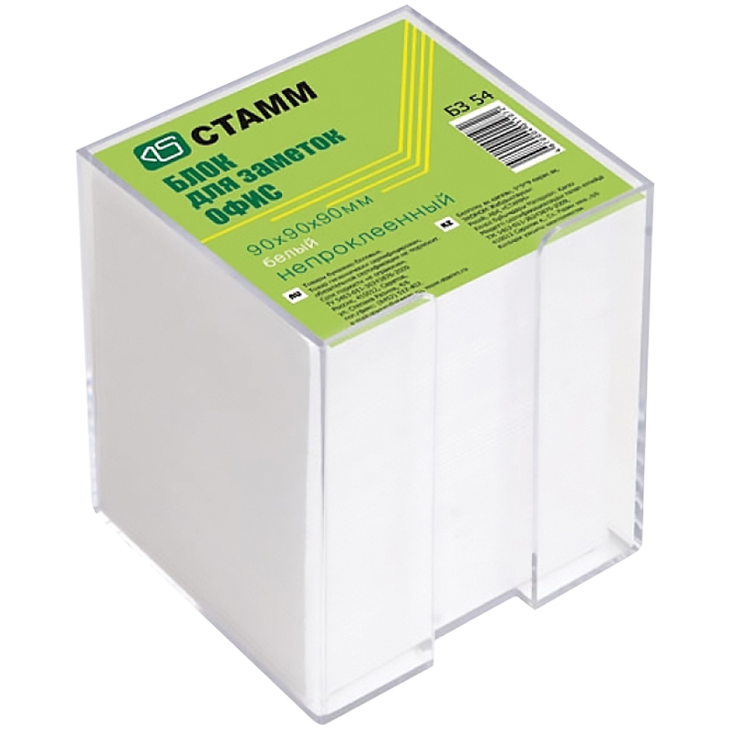 Блок для записи 9х9х9см, в пластбоксе. Пластбокс, в который вложен блок, обеспечивает удобство использования и порядок на рабочем столе. Бумага белая плотностью 65гр/м.кв. Упакован в термоусадочную пленку с цветным вкладышем.