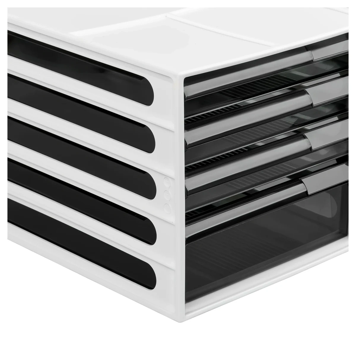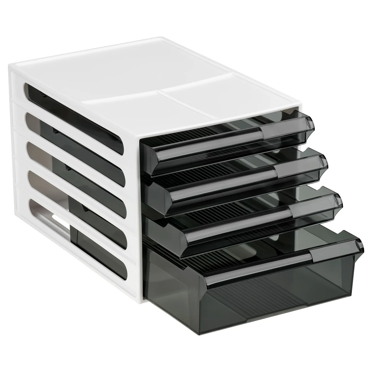 Блок из 4 выдвижных лотков СТАММ, белый корпус, тонированные черные лотки