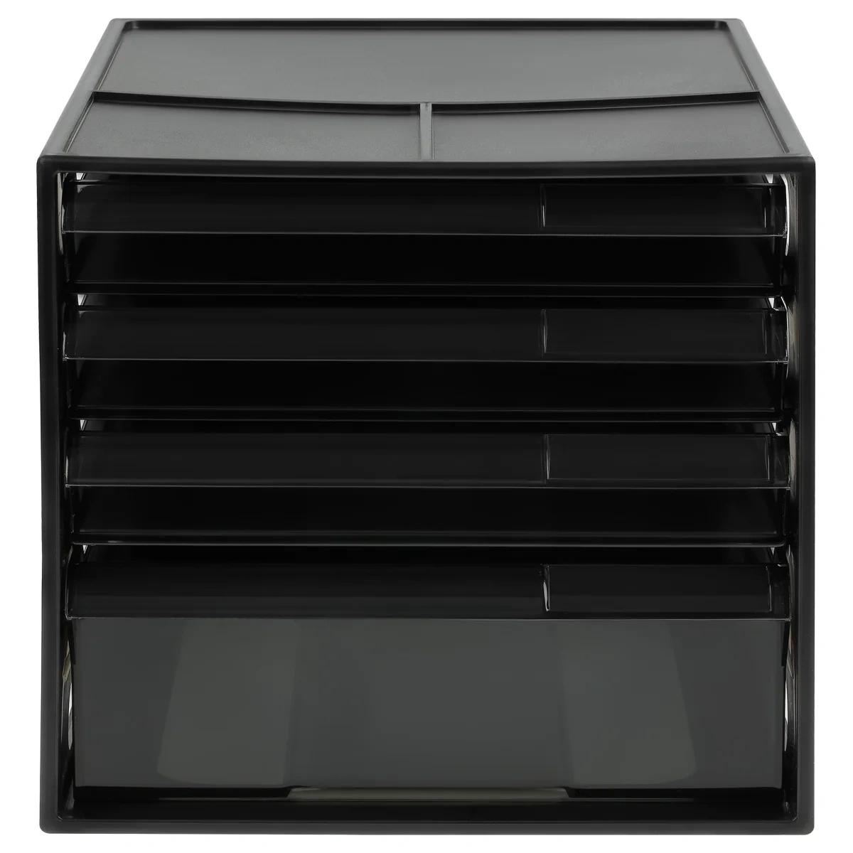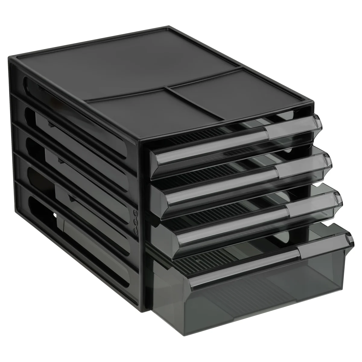 Блок из 4 выдвижных лотков СТАММ, черный корпус, тонированные черные лотки