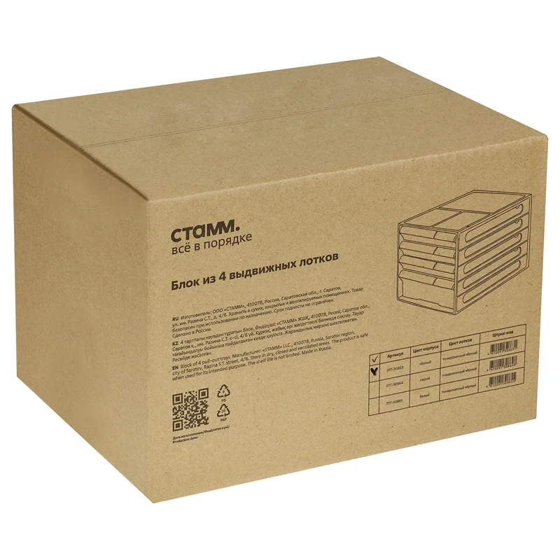 Блок из 4-х выдвижных лотков «СТАММ» предназначен для хранения бумаг формата А4 и канцелярских принадлежностей. Габариты горизонтального блока — 230*340*250 мм. На лотках есть ограничитель, препятствующий выпадению из корпуса. Предусмотрены окна для маркировок, облегчающие сортировку.