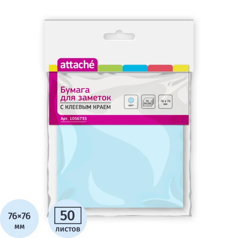 Стикеры Attache в формате 76×76 мм, голубого цвета, 50 листов. Идеально подойдут для сотрудников творческих профессий и руководителей: рекомендуются для использования в процессе совещаний, обучения, мозговых штурмов. Тон стикеров — пастельный. Плотность бумаги: 60 г/кв.м. Клейкий слой — 21 2 Н/м . Длина клейкой стороны 76 мм.