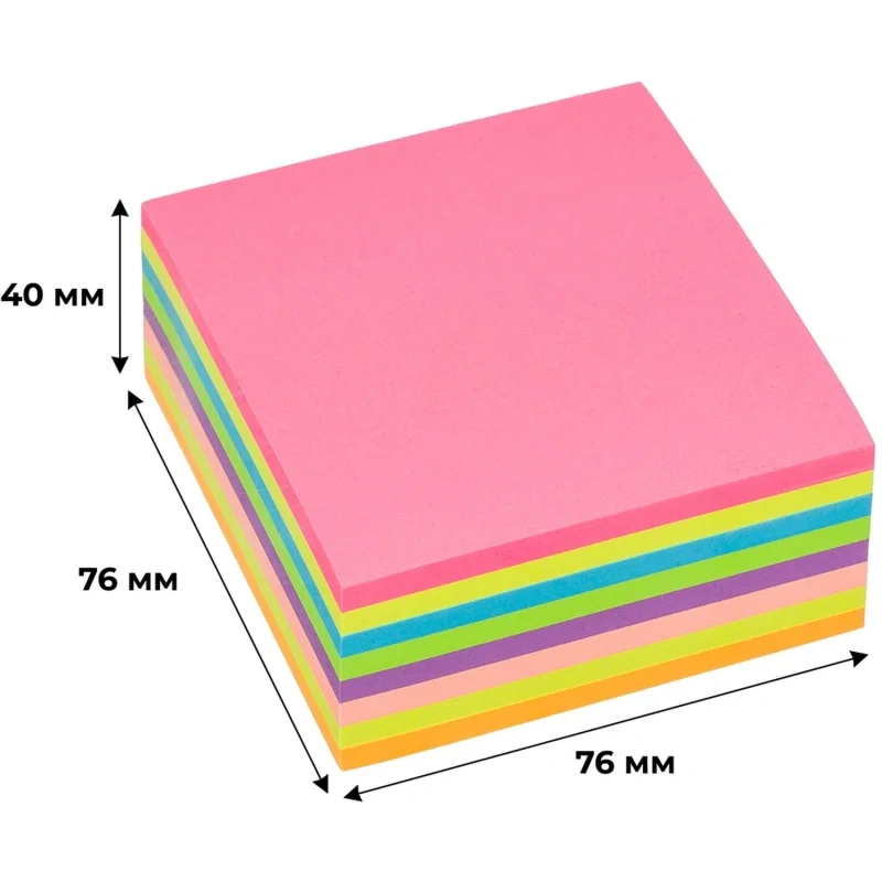 Стикеры Attache Selection в формате 76×76 мм, состоят из 400 листов упакованных в пленку. Стикеры имеют 8 слоев из 8 неоновых цветов (пурпурный, желтый, голубой, салатовый, фиолетовый, розовый, оранжевый). Плотность бумаги: 70 г/кв.м. Клейкий слой — 21 2 Н/м . Идеально подойдут для сотрудников творческих профессий и руководителей: рекомендуются для использования в процессе совещаний, обучения, мозговых штурмов. Длина клейкой стороны 76 мм.