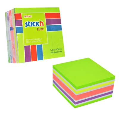 Блок самоклеящийся бумажный Stick`n 21537 76x76мм 400лист. 70г/м2 неон+пастель 5цв.в упак.
