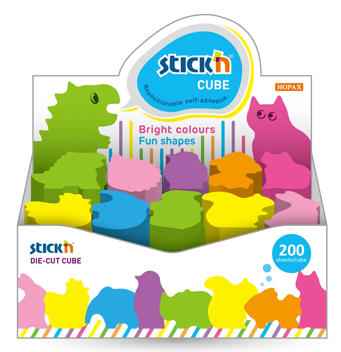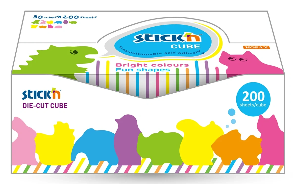 Блок самоклеящийся бумажный Stick`n 21791 64x67мм 200лист. ассорти 'животные' дисплей бокс (упак.:30