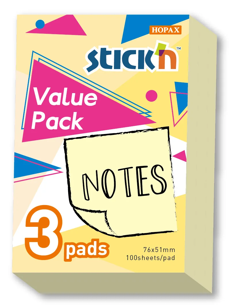 Блок самоклеящийся бумажный Stick`n 27088 76x51мм 300лист. 70г/м2 пастель желтый