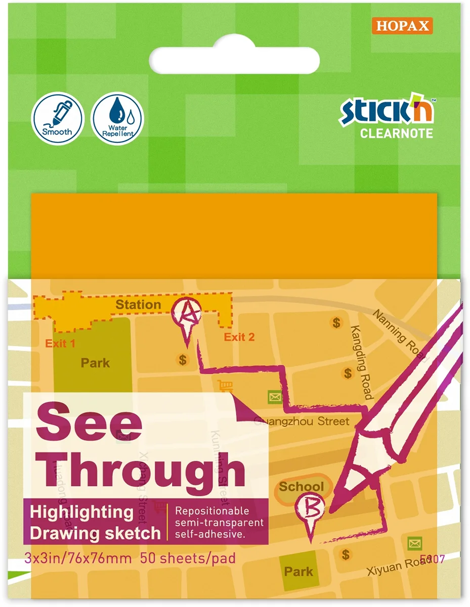 Блок самоклеящийся пластиковый Stick`n Clearnote 21710 76x76мм 50лист. неон оранжевый прозрачный