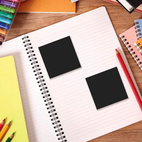 Блок стикеров из бумаги черного цвета в форме квадрата 76х76 мм состоит из 100 листов. Плотность бумаги составляет 75 г/м2. Клейкий слой - 35 Н/м. Стикеры легко клеятся к любой поверхности. Не оставляют следов. Упакован в полиэтиленовую пленку.