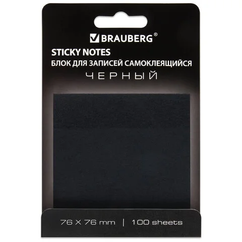 Блок для записей с клейким краем Brauberg черный, 76х76мм, 100 листов