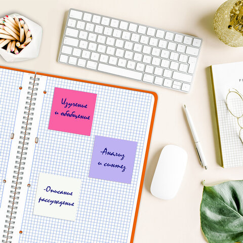 Стикеры 3-х неоновых цветов (розовый, фиолетовый и белый) повышенной клейкости в форме куба 75х75 мм состоят из 450 листов. Плотность бумаги составляет 75 г/м2. Клейкий слой - 55 Н/м. Легко клеятся к любой поверхности. Не оставляют следов. Упакованы в полиэтиленовую пленку.