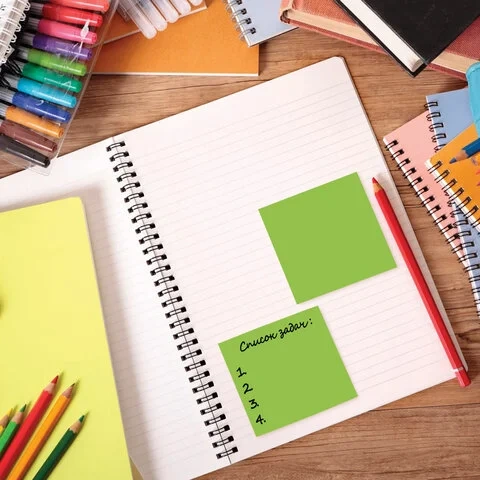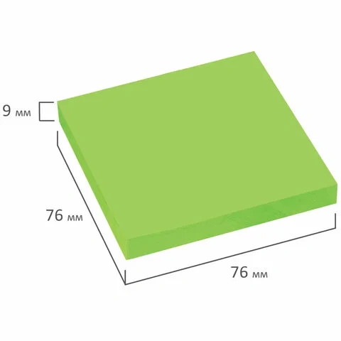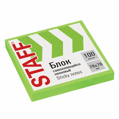 Блок для записей с клейким краем Staff Неоновый зеленый, 76х76мм, 100 листов