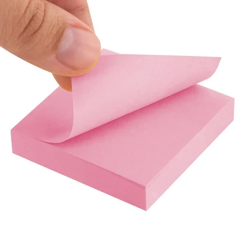 - Отделяйте листы от блока вдоль клеевой полосы, в горизонтальном направлении. Это поможет избежать скручивания и последующего отклеивания стикера.