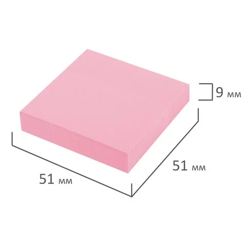 Стикеры розового пастельного цвета в форме квадрата 51х51 мм состоят из 100 листов. Плотность бумаги составляет 65 г/м2. Клейкий слой - 18 Н/м. Легко клеятся к любой поверхности. Не оставляют следов. Упакованы в полиэтиленовую пленку.