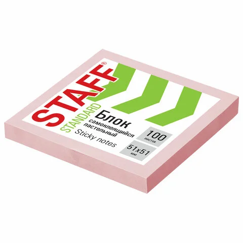 Блок самоклеящийся (стикеры) STAFF STANDARD, ПАСТЕЛЬНЫЙ 51х51 мм, розовый, 100 листов, 116580