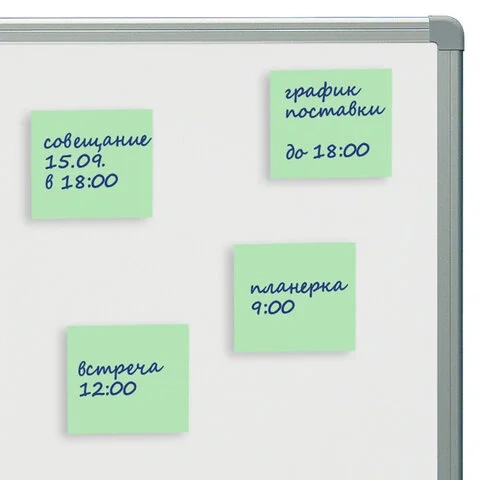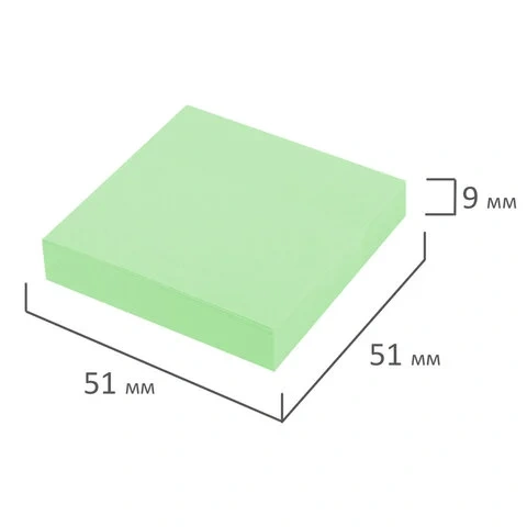Стикеры зеленого пастельного цвета в форме квадрата 51х51 мм состоят из 100 листов. Плотность бумаги составляет 65 г/м2. Клейкий слой - 18 Н/м. Легко клеятся к любой поверхности. Не оставляют следов. Упакованы в полиэтиленовую пленку.