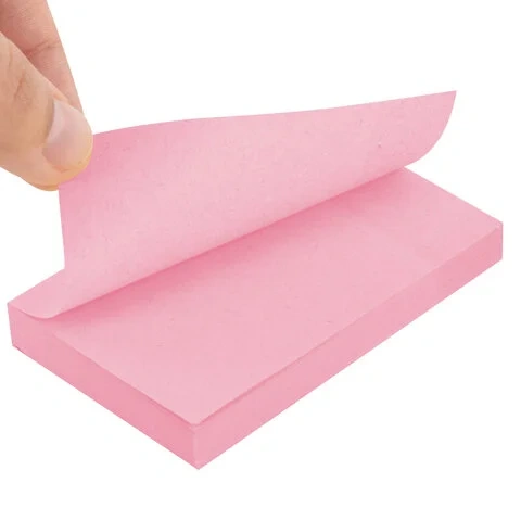 - Отделяйте листы от блока вдоль клеевой полосы, в горизонтальном направлении. Это поможет избежать скручивания и последующего отклеивания стикера.