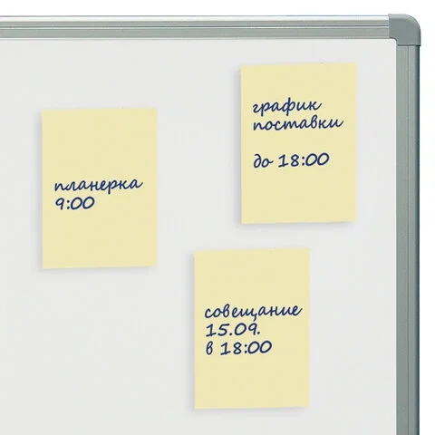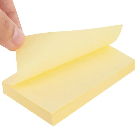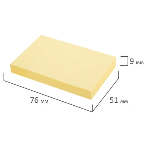 Стикеры жёлтого пастельного цвета в форме квадрата 76х51 мм состоят из 100 листов. Плотность бумаги составляет 65 г/м2. Клейкий слой - 18 Н/м. Легко клеятся к любой поверхности. Не оставляют следов. Упакованы в полиэтиленовую пленку.