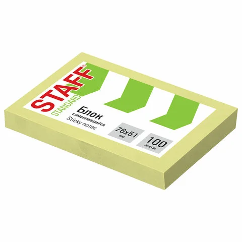 Блок самоклеящийся (стикеры) STAFF STANDARD, ПАСТЕЛЬНЫЙ 76х51 мм, желтый, 100 листов, 116581