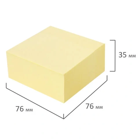 Стикеры желтого пастельного цвета в форме квадрата 76х76 мм состоят из 400 листов. Плотность бумаги составляет 65 г/м2. Клейкий слой - 22 Н/м. Легко клеятся к любой поверхности. Не оставляют следов. Упакованы в полиэтиленовую пленку.