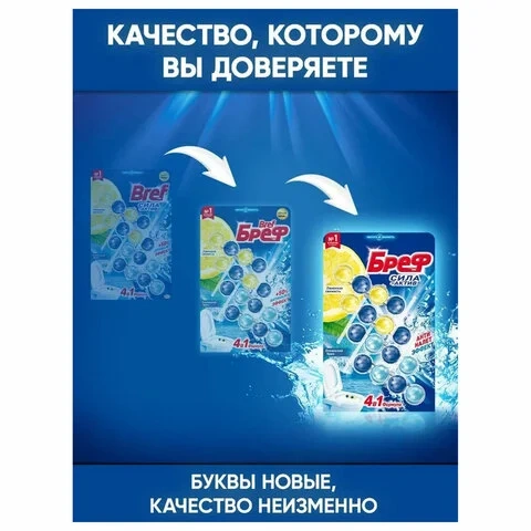 Освежитель для унитаза Bref Сила-Актив лимон- океанский бриз, 50г х 4шт, подвесной блок