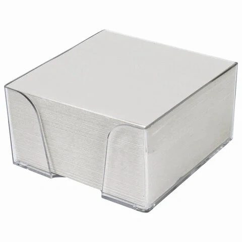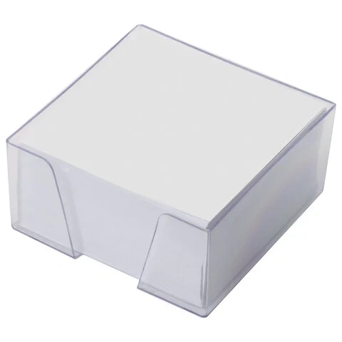 Блок для записей STAFF в подставке прозрачной, куб 9х9х5 см, белый, белизна 90-92%, 129193
