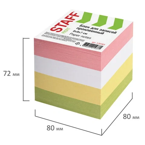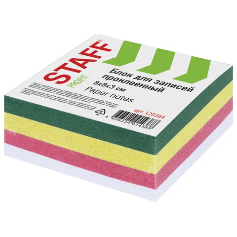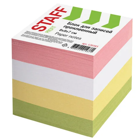 Блок для записей проклеенный Staff 9х9х9см, цветной
